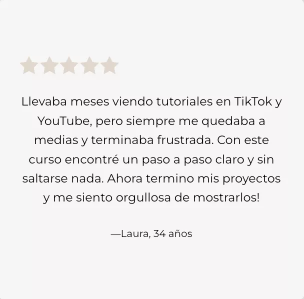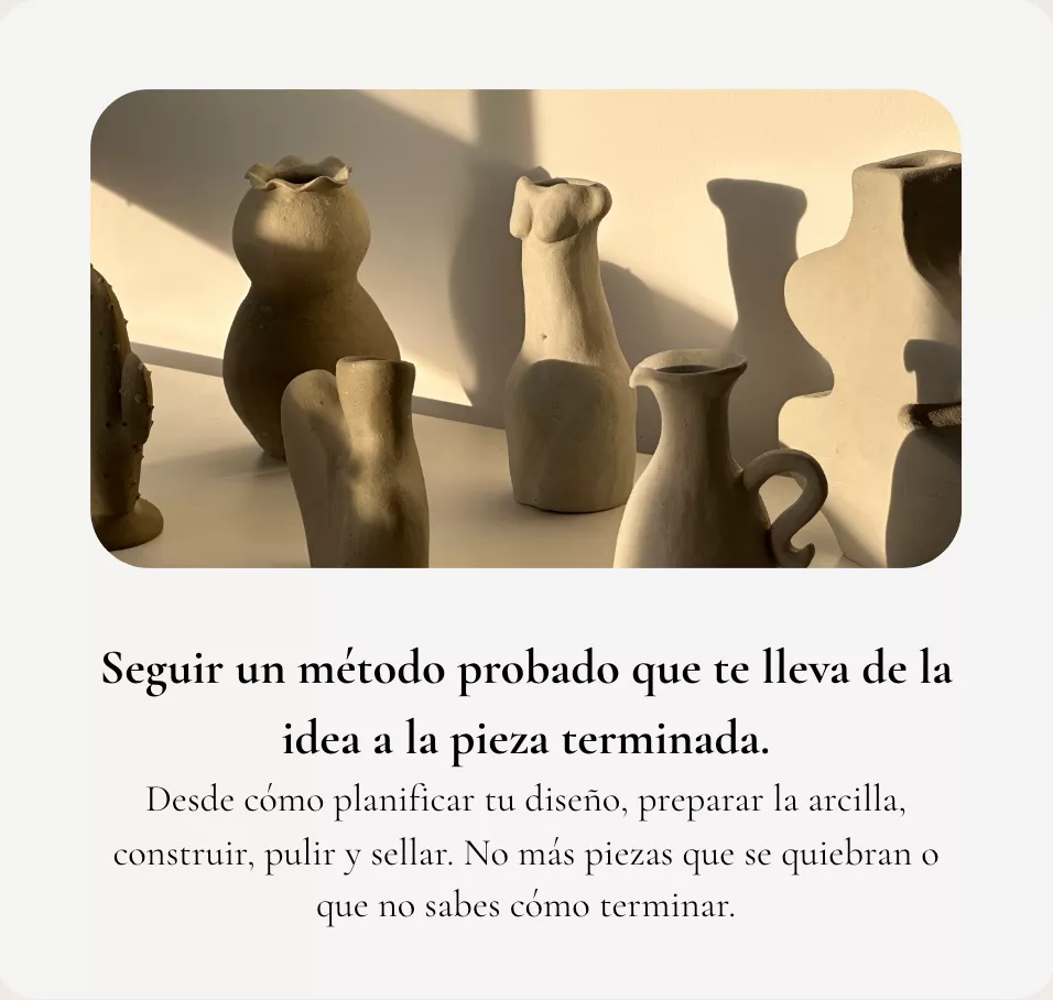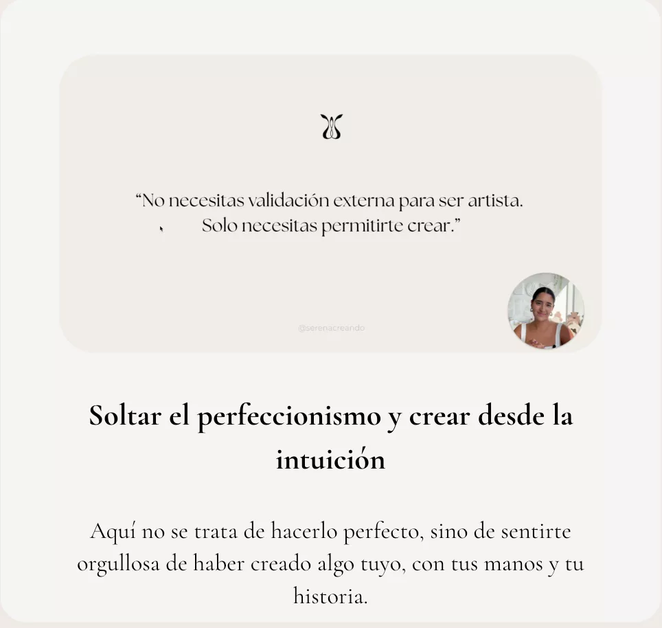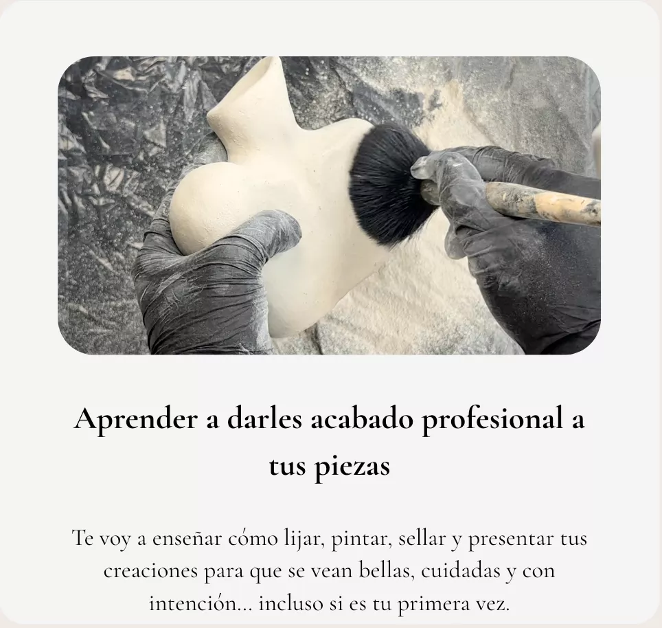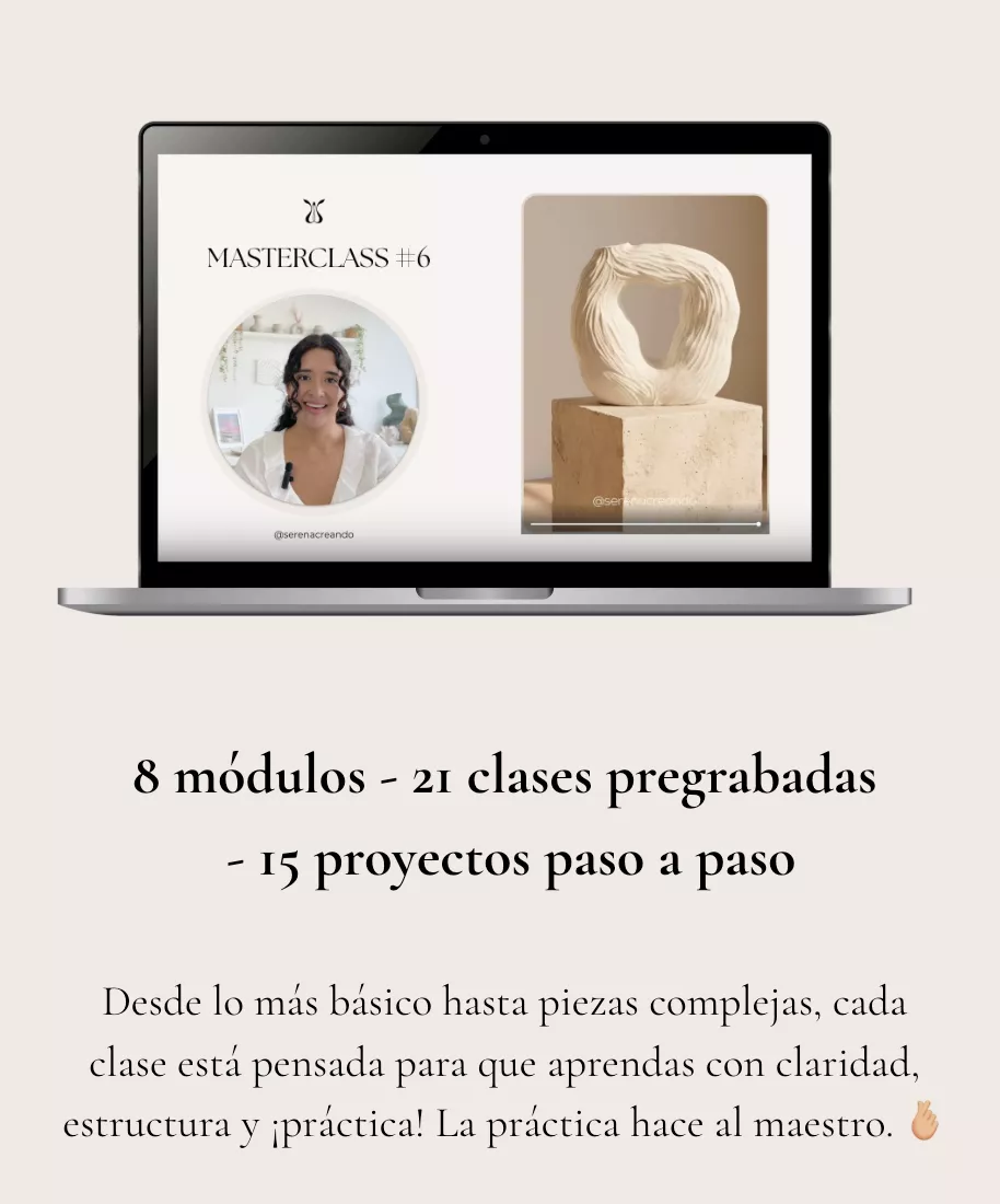 Si el perfeccionismo y la falta de conocimiento te detienen, estás en el lugar indicado. Mi curso online está diseñado para empoderarte y desbloquear tu potencial creativo. Aprenderás todo lo necesario para crear piezas hermosas sin frustraciones. No más dudas, solo claridad y acción en tu viaje artístico.